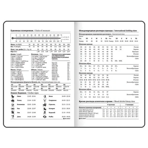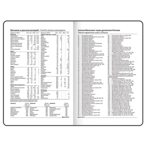 Внутренний блок содержит 128 листов офсетной бумаги плотностью 65 г/м2. Обложка 7БЦ (твердый переплет с матовой пленкой) обеспечивает долгий срок службы. Снабжен резинкой-фиксатором, благодаря чему ежедневник не откроется в сумке или портфеле.