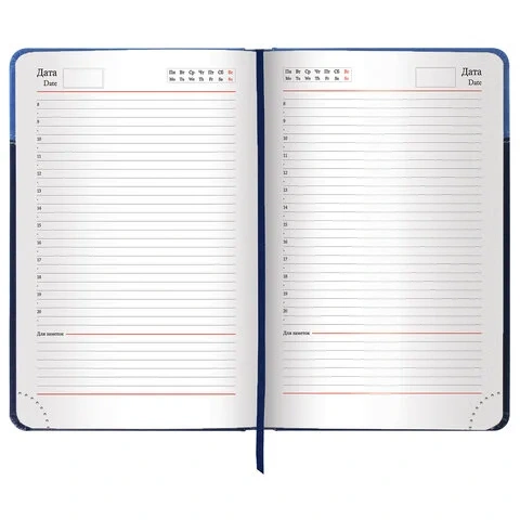 Внутренний блок включает 160 листов белой бумаги плотностью 70 г/м2. Каждая страничка имеет перфорированный угол. Благодаря стандартному формату А5 ежедневник удобно использовать как в офисе, так и на выездных деловых встречах. Твердая обложка состоит из двух материалов под 'гладкую кожу'. Подходит для горячего тиснения. Дополнением является закладка-ляссе, с помощью которой при необходимости можно быстро открыть ежедневник на нужной странице. Помимо прочего ежедневник снабжен обширным справочным материалом.