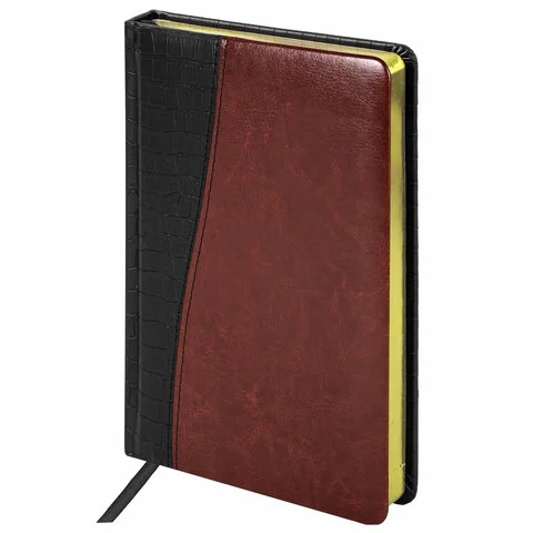 Ежедневник недатированный Brauberg Cayman чёрно-коричневый, А5, 168 листов, комбинированная кожа
