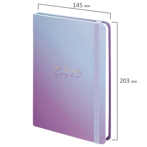 Внутренний блок содержит 128 листов офсетной бумаги плотностью 65 г/м2. Обложка 7БЦ (твердый переплет с матовой пленкой) обеспечивает долгий срок службы. Снабжен резинкой-фиксатором, благодаря чему ежедневник не откроется в сумке или портфеле.