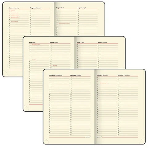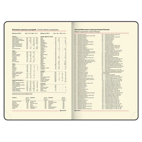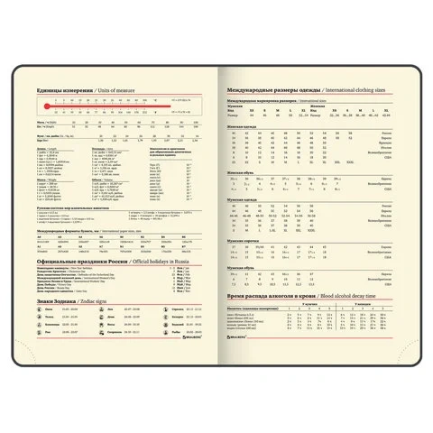 На форзаце располагаются карты России и мира. Дополнением является закладка-ляссе, с помощью которой при необходимости можно быстро открыть ежедневник на нужной странице. Помимо прочего, ежедневник снабжен обширным справочным материалом. В конце ежедневника есть 7 страниц для записей и заметок.