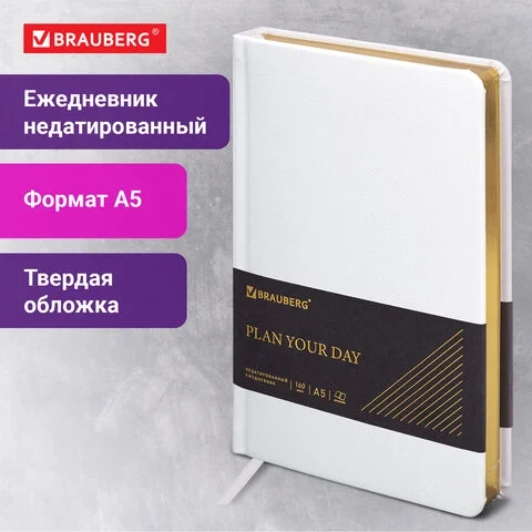 Ежедневник недатированный Brauberg Iguana белый, A5, 160 листов, под кожу