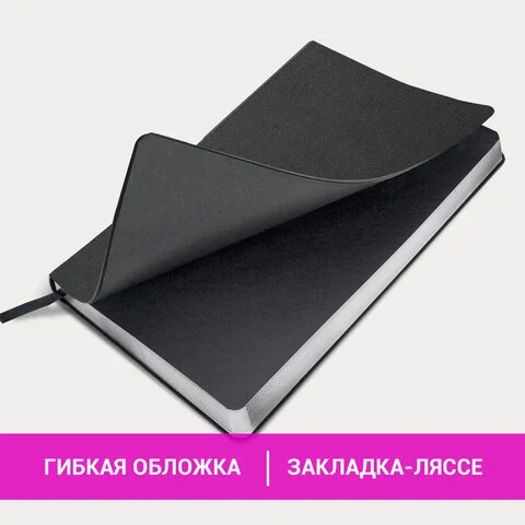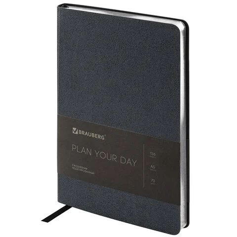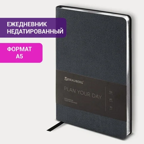 Ежедневник недатированный Brauberg Metallic черный, A5, 136 листов, под кожу