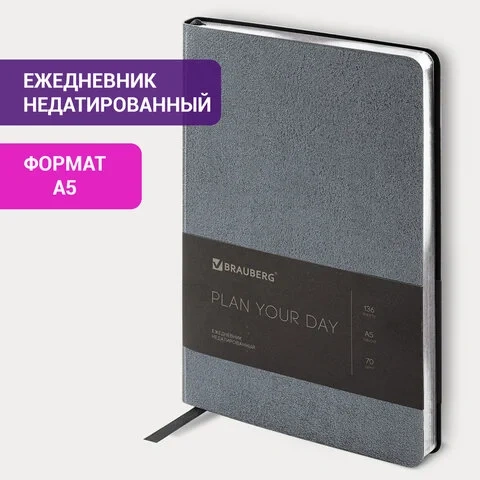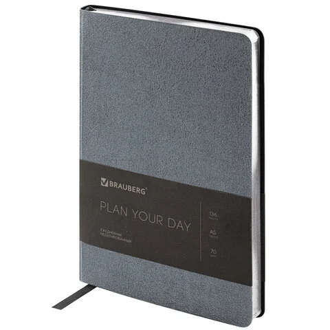 Ежедневник недатированный Brauberg Metallic графитовый, A5, 136 листов, под кожу