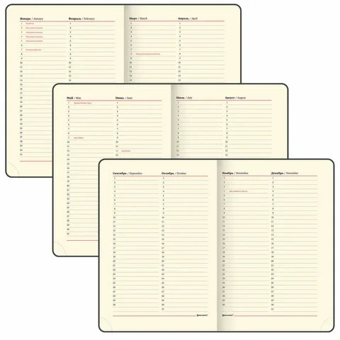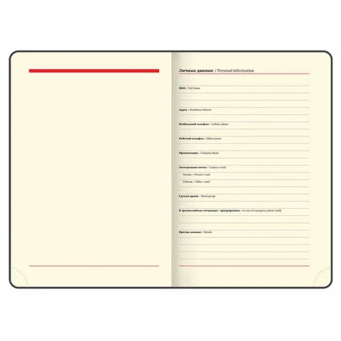 Внутренний блок включает 160 листов тонированной бумаги плотностью 70 г/м2. Каждая страничка имеет перфорированный угол. Благодаря стандартному формату А5 (138х213 мм) ежедневник удобно использовать как в офисе, так и на выездных деловых встречах. Мягкая (интегральная) обложка стилизована под гладкую кожу. Подходит для горячего тиснения. Снабжен резинкой-фиксатором, благодаря чему ежедневник не откроется в сумочке или портфеле и листы не помнутся. Дополнением является закладка-ляссе, с помощью которой при необходимости можно быстро открыть ежедневник на нужной странице. Помимо прочего ежедневник снабжен справочным материалом.