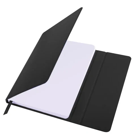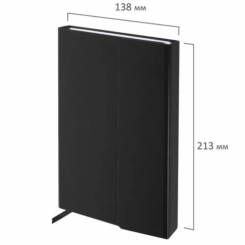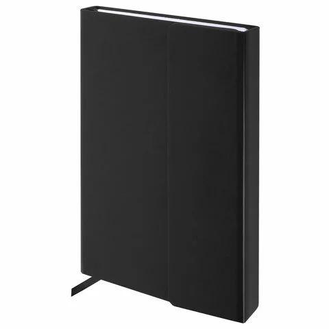 Внутренний блок включает 160 листов белой бумаги плотностью 70 г/м2. Каждая страничка имеет перфорированный угол. Благодаря стандартному формату А5 ежедневник удобно использовать как в офисе, так и на выездных деловых встречах. Твердая обложка, выполненная в классическом черном цвете и стилизованная под гладкую кожу, фиксируется магнитным клапаном, поэтому ежедневник не откроется в сумке или портфеле и страницы не помнутся. Подходит для горячего тиснения. Дополнением является закладка-ляссе, с помощью которой при необходимости можно быстро открыть ежедневник на нужной странице. Помимо прочего ежедневник снабжен обширным справочным материалом.