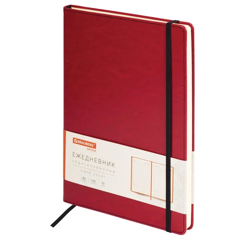 Ежедневник недатированный Brauberg Office красный, А4, 160 листов, под кожу
