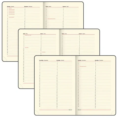 Внутренний блок включает 160 листов тонированной бумаги плотностью 70 г/м2. Каждая страничка имеет перфорированный угол. Благодаря большому формату А4 (210х297 мм) ежедневник удобно использовать как в офисе, так и на выездных деловых встречах. Твердая обложка стилизована под гладкую кожу. Подходит для горячего тиснения. Снабжен резинкой-фиксатором, благодаря чему ежедневник не откроется в сумочке или портфеле и листы не помнутся.
