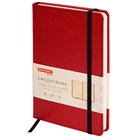 Ежедневник недатированный Brauberg Office красный, A5, 160 листов, под кожу