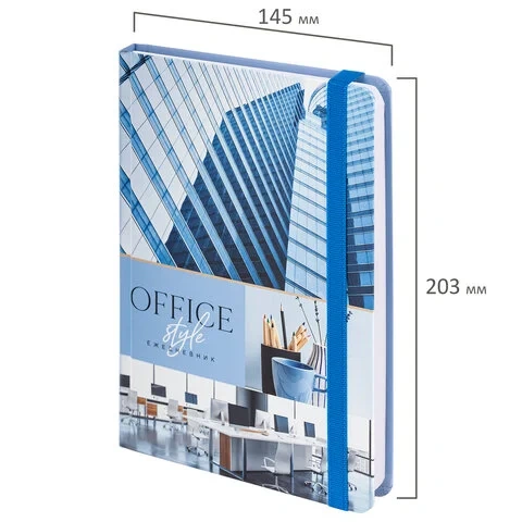 Внутренний блок содержит 128 листов офсетной бумаги плотностью 65 г/м2. Обложка 7БЦ (твердый переплет с матовой пленкой) обеспечивает долгий срок службы. Снабжен резинкой-фиксатором, благодаря чему ежедневник не откроется в сумке или портфеле.
