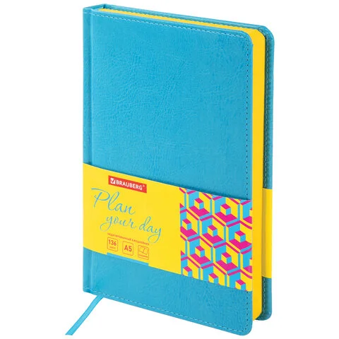 Ежедневник недатированный Brauberg Rainbow бирюзовый, А5, 136 листов, кожзам