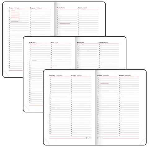 Дополнением является закладка-ляссе, с помощью которой при необходимости можно быстро открыть ежедневник на нужной странице.