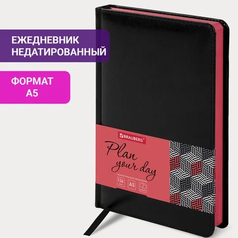 Ежедневник недатированный Brauberg Rainbow черный/красный, A5, 136 листов, под кожу