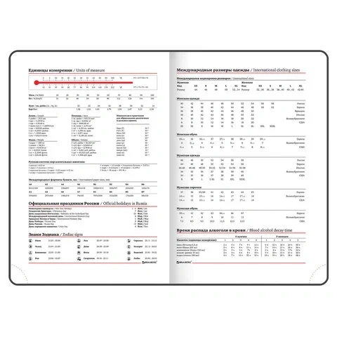Помимо прочего, ежедневник снабжен обширным справочным материалом. В конце ежедневника есть 3 страницы для записей и заметок.