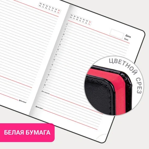 Твердая обложка стилизована под гладкую кожу. Подходит для горячего тиснения. Срез и форзац ежедневника окрашены на контрасте с цветом обложки, что придает ему особый шарм.