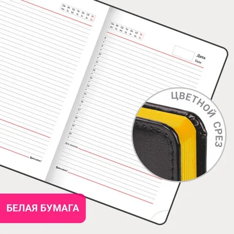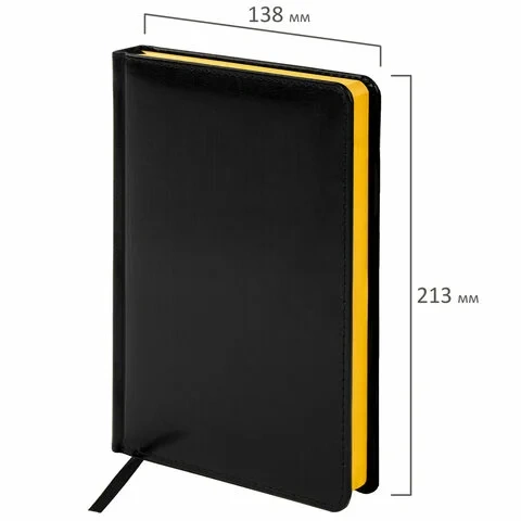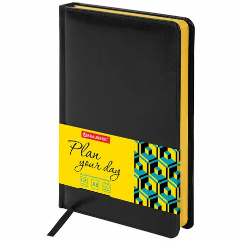 Ежедневник недатированный Brauberg Rainbow черный/желтый, A5, 136 листов, под кожу