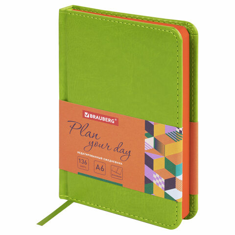 Ежедневник недатированный Brauberg Rainbow зеленый, А6, 136 листов, кожзам