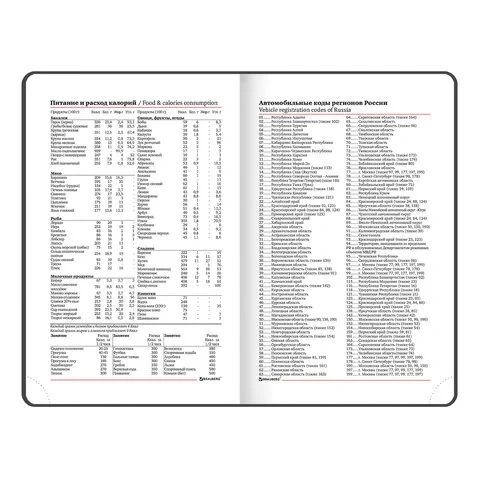 Внутренний блок включает 160 листов белой бумаги плотностью 70 г/м2. Каждая страничка имеет перфорированный угол. Благодаря формату А6 ежедневник удобно использовать как в офисе, так и на выездных деловых встречах. Твердая обложка, стилизованная под гладкую кожу. подходит только для тиснения фольгой. Дополнением является закладка-ляссе, с помощью которой при необходимости можно быстро открыть ежедневник на нужной странице. Помимо прочего ежедневник снабжен обширным справочным материалом.