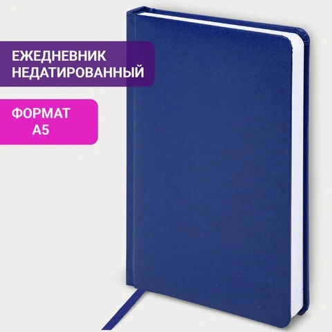 Ежедневник недатированный Brauberg Select синий, А5, 160 листов, кожзам