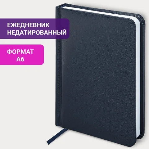 Ежедневник недатированный Brauberg Select темно-синий, А6, 168 листов, под зернистую кожу