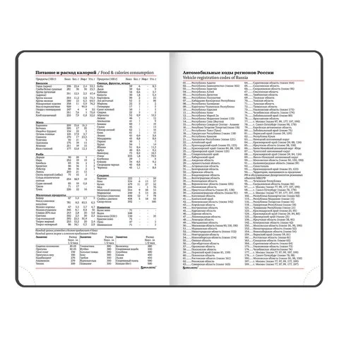Внутренний блок включает 160 листов белой бумаги плотностью 70 г/м2. Каждая страничка имеет перфорированный угол. Благодаря формату А6 ежедневник удобно использовать как в офисе, так и на выездных деловых встречах. Твердая обложка, стилизованная под гладкую кожу, подходит только для тиснения фольгой. Дополнением является закладка-ляссе, с помощью которой при необходимости можно быстро открыть ежедневник на нужной странице. Помимо прочего ежедневник снабжен обширным справочным материалом.