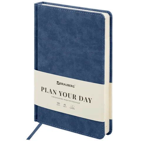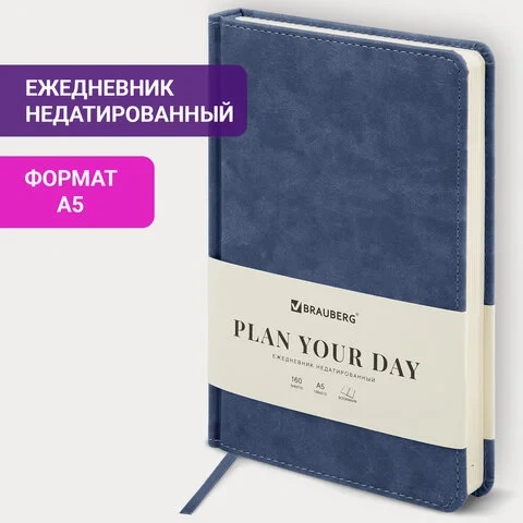 Ежедневник недатированный Brauberg Status темно-синий, A5, 160 листов, под кожу