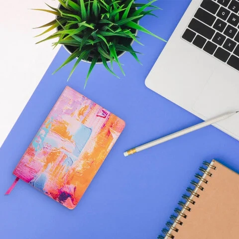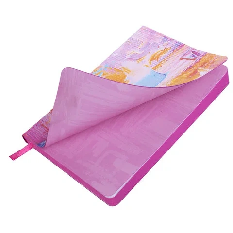 Внутренний блок включает 136 листов белой бумаги плотностью 70 г/м2. Благодаря малому формату В6 ежедневник удобно использовать как в офисе, так и на выездных деловых встречах. Интегральная (мягкая) обложка с полноцветной печатью делает ежедневник неповторимым и запоминающимся. Срез ежедневника окрашен в цвет обложки, что придает ему особый шарм. Дополнением является закладка-ляссе, с помощью которой можно быстро открыть ежедневник на нужной странице.