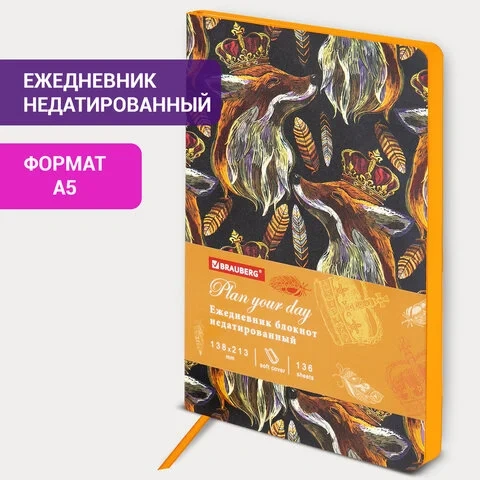 Ежедневник недатированный Brauberg Vista Fox king, A5, 136 листов, под кожу, гибкий