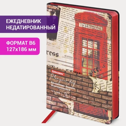 Ежедневник недатированный Brauberg Vista Good old England, B6, 136 листов, под кожу, гибкий