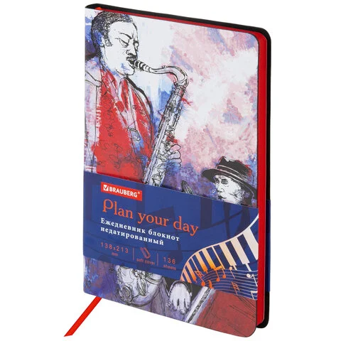 Внутренний блок включает 136 листов белой бумаги плотностью 70 г/м2. Благодаря стандартному формату А5 ежедневник удобно использовать как в офисе, так и на выездных деловых встречах. Интегральная (мягкая) обложка с полноцветной печатью делает ежедневник неповторимым и запоминающимся.