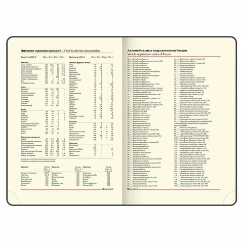 Срез ежедневника прокрашен, что придает ему особый шарм. Дополнением является закладка-ляссе, с помощью которой можно быстро открыть ежедневник на нужной странице. Помимо прочего ежедневник снабжен справочным материалом. В конце ежедневника есть 3 страницы для записей и заметок.