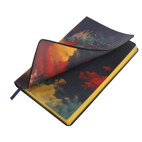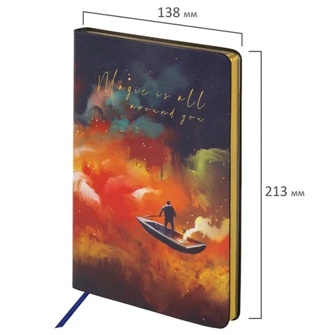 Внутренний блок включает 136 листов белой бумаги плотностью 70 г/м2. Благодаря стандартному формату А5 ежедневник удобно использовать как в офисе, так и на выездных деловых встречах. Интегральная (мягкая) обложка с полноцветной печатью делает ежедневник неповторимым и запоминающимся.