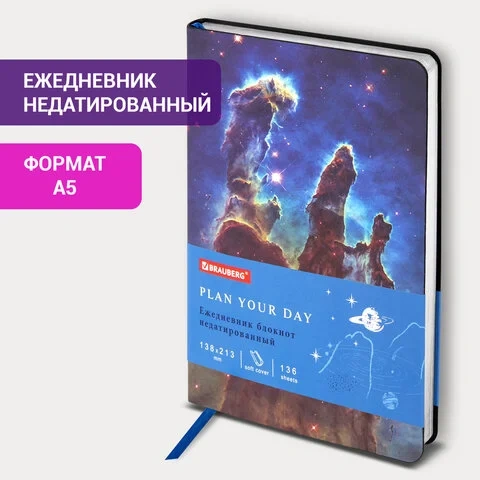 Ежедневник недатированный Brauberg Vista SpaceX, A5, 136 листов, под кожу, гибкий
