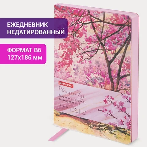 Ежедневник недатированный Brauberg Vista Spring garden, B6, 136 листов, под кожу, гибкий