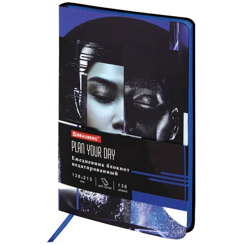 Внутренний блок включает 136 листов белой бумаги плотностью 70 г/м2. Благодаря стандартному формату А5 ежедневник удобно использовать как в офисе, так и на выездных деловых встречах. Интегральная (мягкая) обложка с полноцветной печатью делает ежедневник неповторимым и запоминающимся.