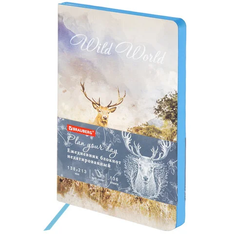 Ежедневник недатированный Brauberg Vista Wild World, A5, 136 листов, под кожу, гибкий