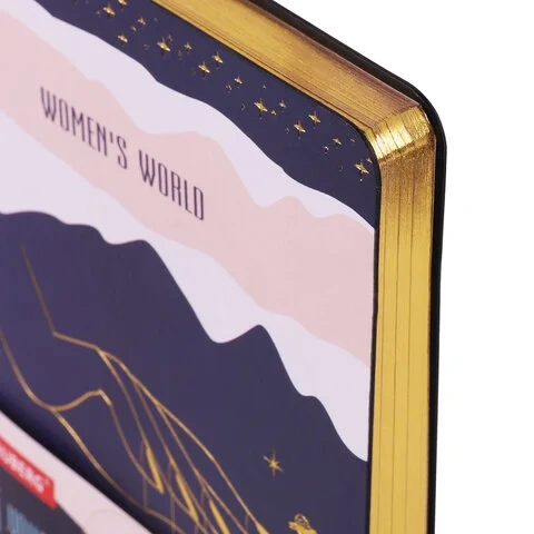 Внутренний блок включает 136 листов белой бумаги плотностью 70 г/м2. Благодаря стандартному формату А5 ежедневник удобно использовать как в офисе, так и на выездных деловых встречах. Интегральная (мягкая) обложка с полноцветной печатью и тиснением золотой фольгой делает ежедневник неповторимым и запоминающимся. Срез ежедневника фольгирован золотой фольгой, что придает ему особый шарм. Дополнением является закладка-ляссе, с помощью которой можно быстро открыть ежедневник на нужной странице.