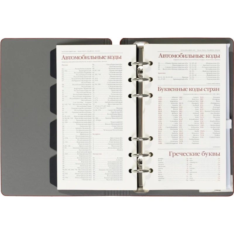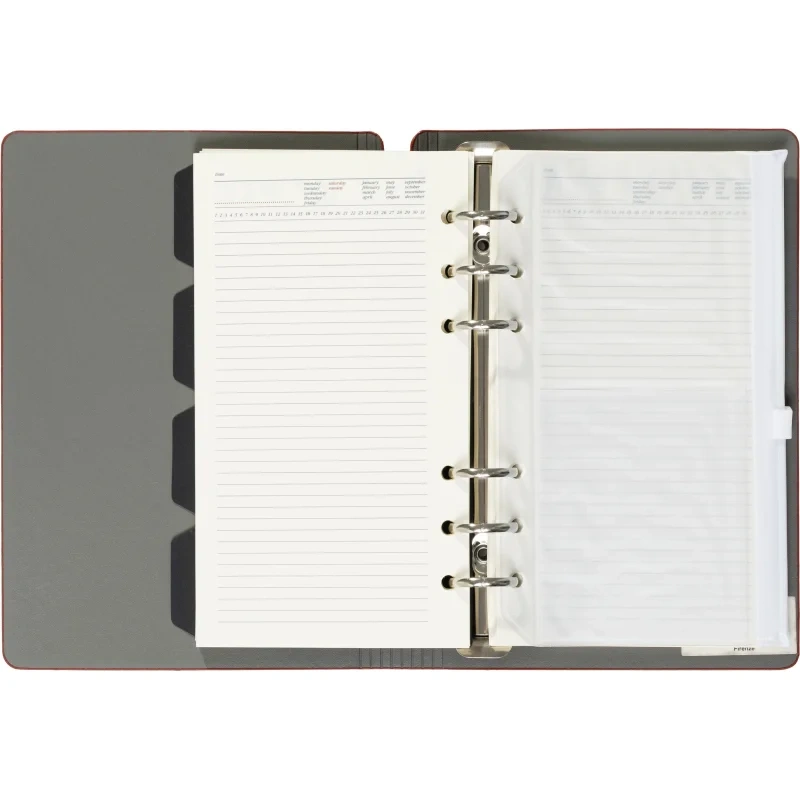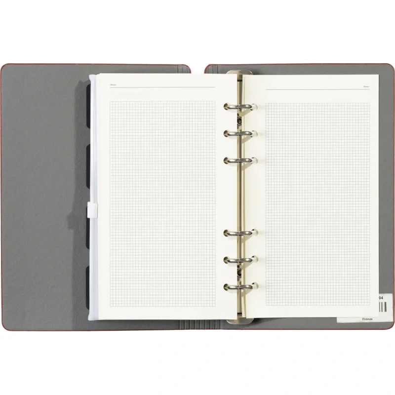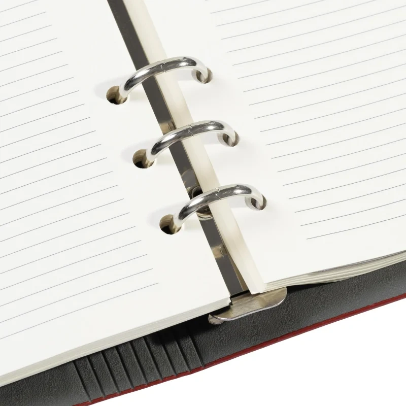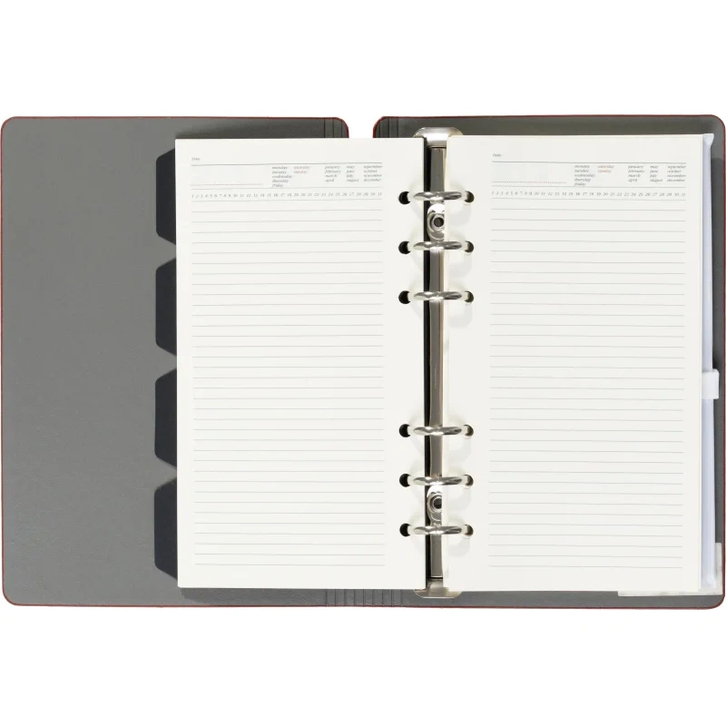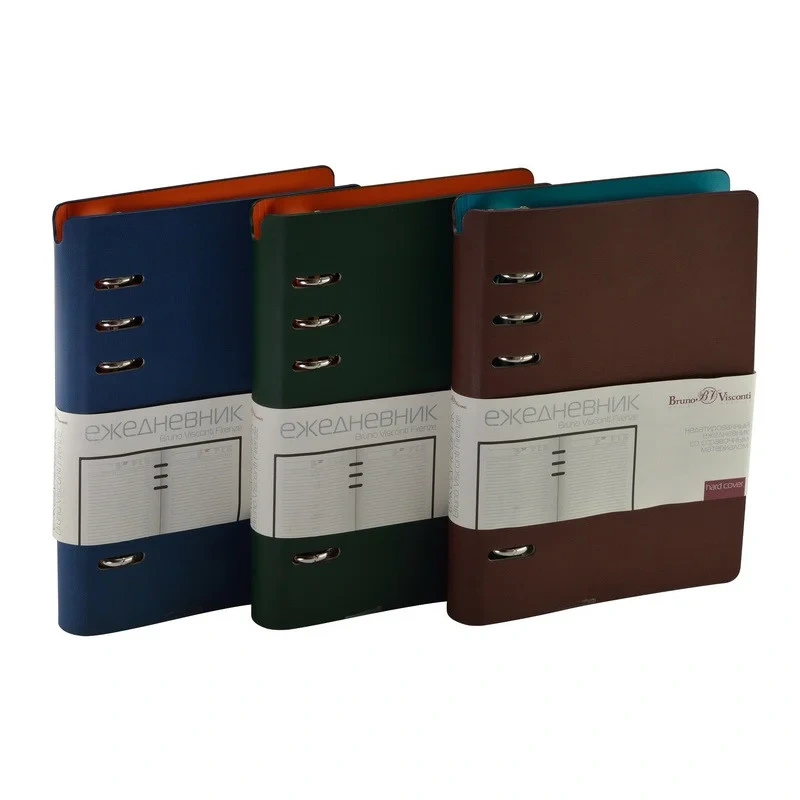 Блок ежедневника состоит из 120 листов (240 страниц) высококачественной бежевой офсетной бумаги плотностью 70 г/кв.м., с линовкой в линейку для записи. Страницы недатированы, что позволяет начать использовать ежедневник в любое время. Металлический разжимной механизм надёжно удерживает все страницы.