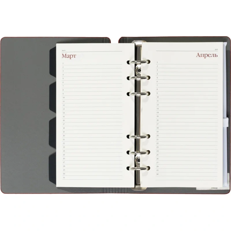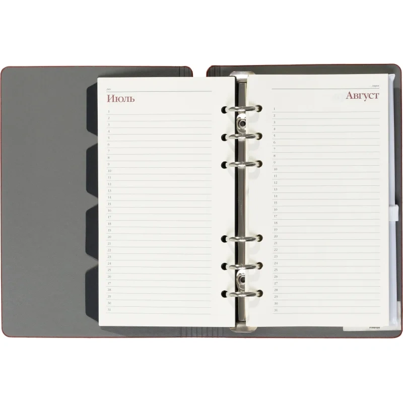 Функциональность ежедневника расширена с добавлением пластикового конверта для бумаг и визиток, а также картонных разделителей для структурирования записей по разделам. Это делает ежедневник удобным инструментом для организации информации.