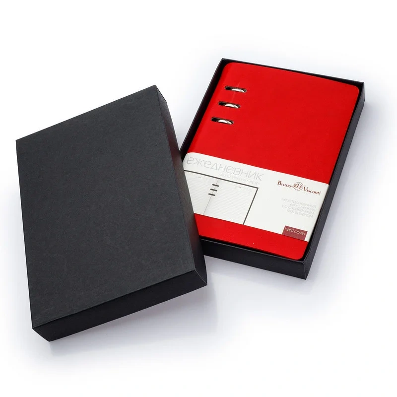Ежедневник из коллекции Firenze от Bruno Visconti — это стильный и функциональный аксессуар, который сочетает современный дизайн и высокое качество. Обложка яркого красного цвета выполнена из материала с эффектом soft-touch, который приятен на ощупь и минимально изнашивается со временем. Скруглённые уголки и углубление для фиксации клипа для письменных принадлежностей делают его удобным и элегантным. Для оформления форзацев использована гладкая искусственная кожа серого цвета, которая гармонично дополняет общий стиль.