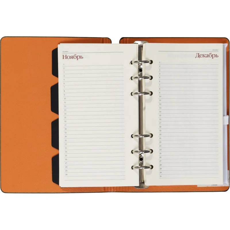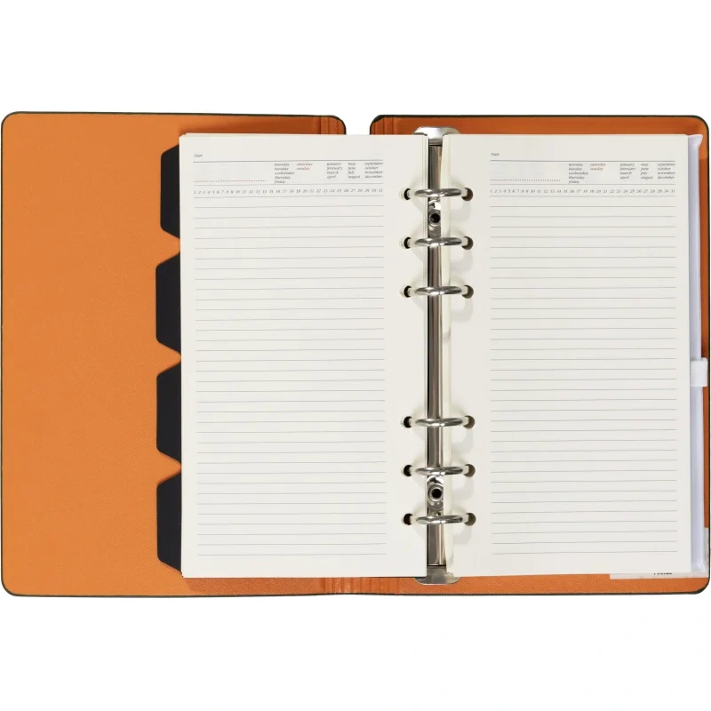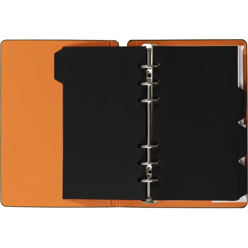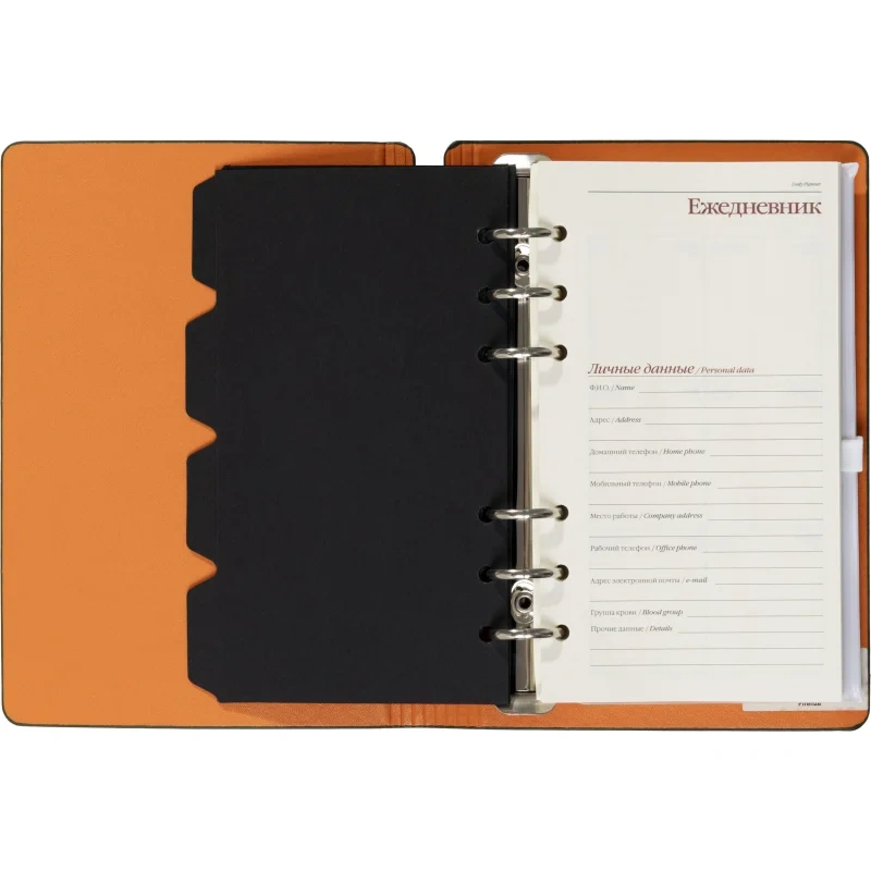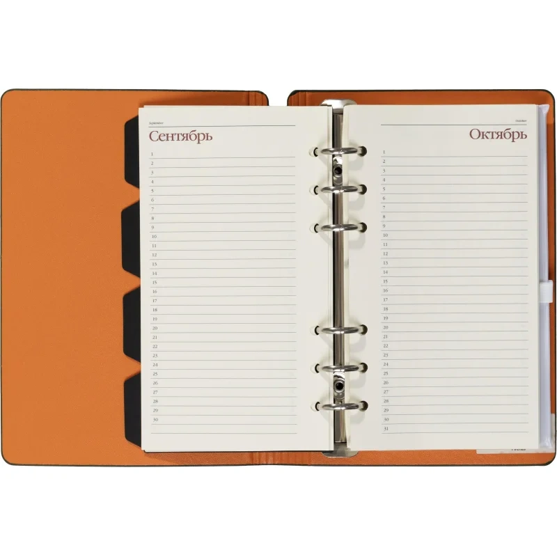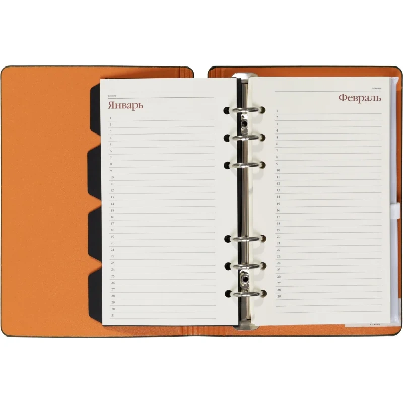 Ежедневник недатированный Bruno Visconti Firenze искусственная кожа Soft Touch 143x197 мм 120 листов зелёныйЕжедневник из коллекции Firenze от Bruno Visconti - это стильный и функциональный аксессуар, который отражает современный подход к дизайну и практичности. Обложка зелёного цвета выполнена из гладкого материала с эффектом soft-touch, который приятно ощущается на ощупь и минимально изнашивается со временем. Скруглённые уголки и углубление для фиксации клипа для письменных принадлежностей делают его удобным и элегантным. Для оформления форзацев использована гладкая искусственная кожа оранжевого цвета.Внутренний блок состоит из 120 листов (240 страниц) высококачественной бежевой офсетной бумаги плотностью 70 г/кв.м., с линовкой в линейку для удобной записи. Страницы недатированные, что даёт возможность начать использовать ежедневник в любой момент. Металлический разжимной механизм надёжно удерживает все страницы.Ежедневник дополнен функциональными элементами: пластиковым конвертом для бумаг и визиток, а также картонными разделителями для структурирования записей по разделам.Ежедневник поставляется в индивидуальной картонной коробке (размер 143x197 мм). Возможность персонализации добавляет индивидуальности и делает его идеальным для корпоративных нужд.