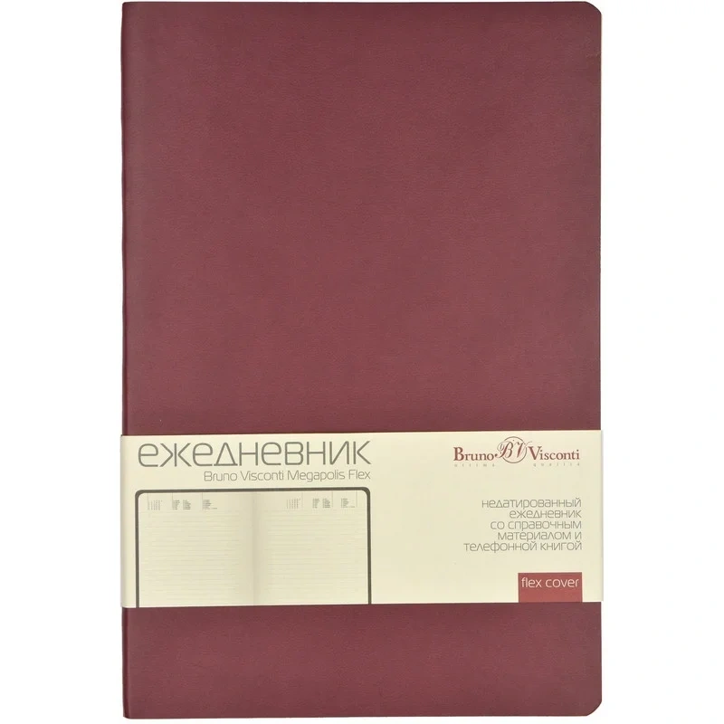 Ежедневник недатированный Bruno Visconti Megapolis Flex бордовый, А5, 176 листов, кожзам