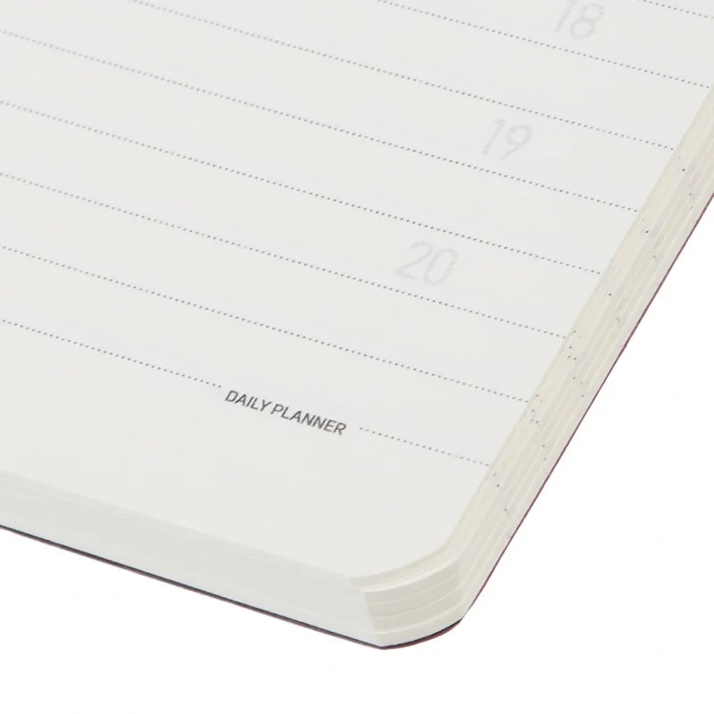 Каждый ежедневник можно персонализировать с нанесением логотипа. Печать блока выполнена в одном цвете, а скруглённые углы придают изысканный вид.