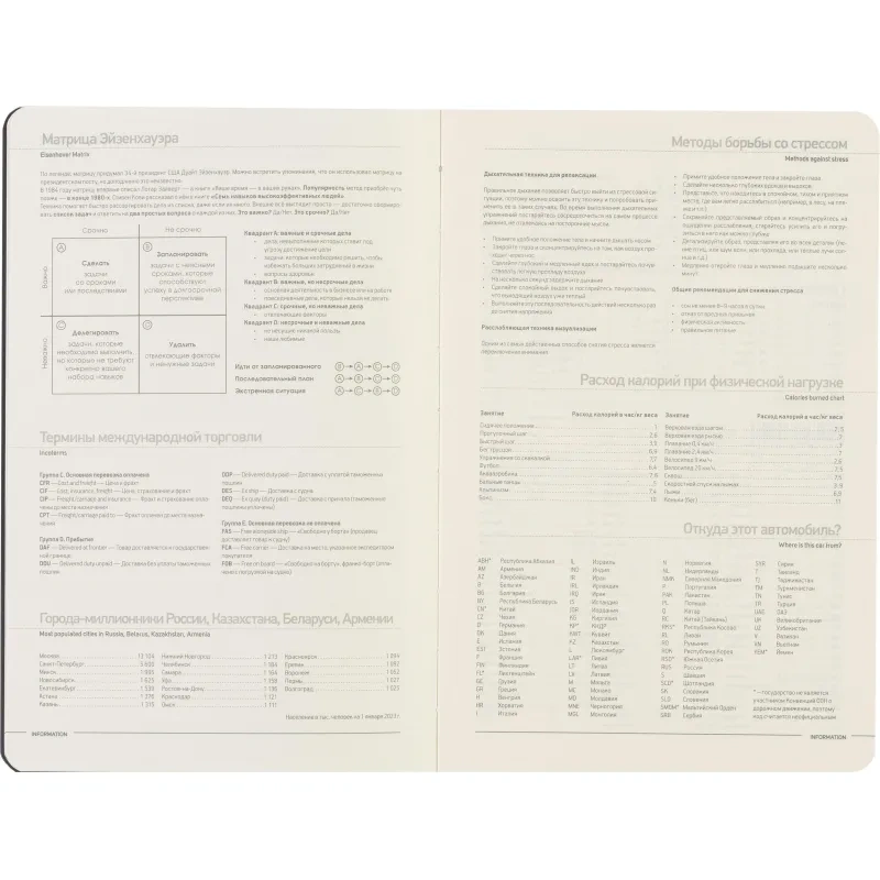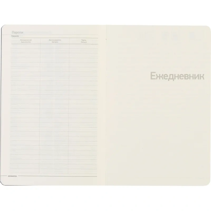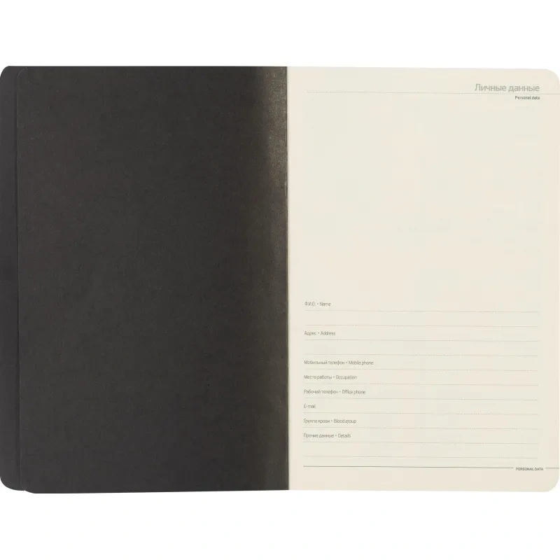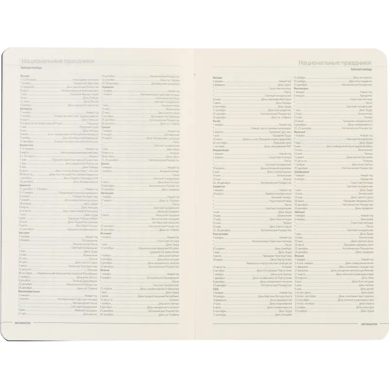 Внутри ежедневника также предусмотрены справочный раздел и телефонная книга. Печать блока выполнена в одном цвете, а скруглённые углы придают ежедневнику изысканный вид. Возможность персонализации с нанесением логотипа на обложку делает его отличным выбором для корпоративных нужд.