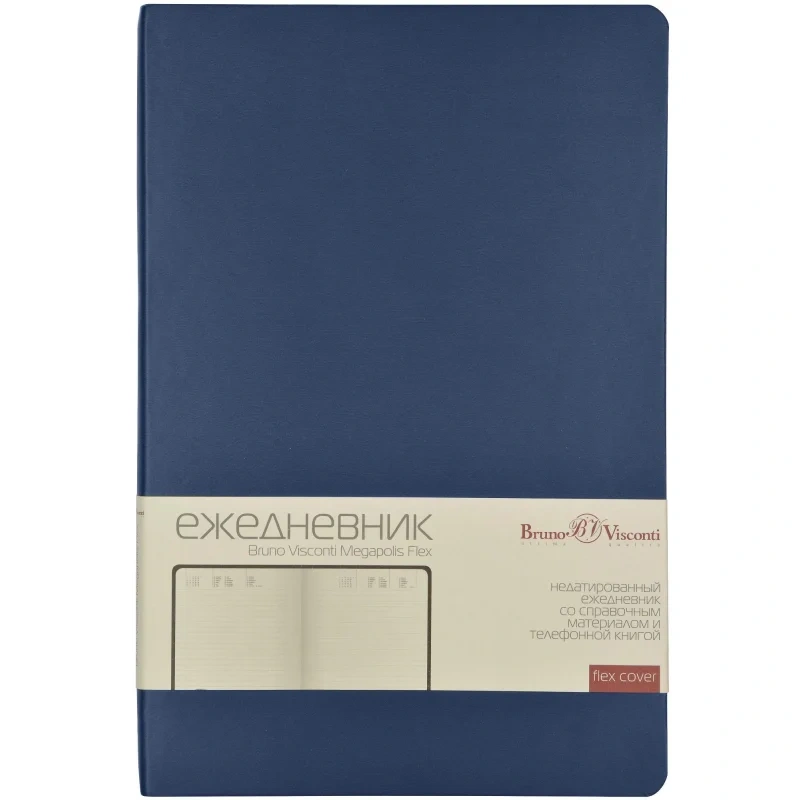 Ежедневник Bruno Visconti Megapolis Flex с элегантной мягкой обложкой выполнен из кожзама. Углы скруглённые. Формат А5 (14×21 см) идеально подходит для повседневного использования.