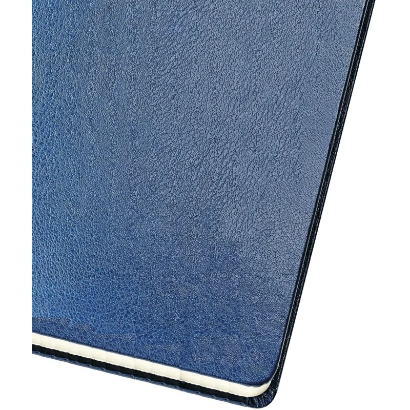 Для классическиx моделей Megapolis выбран традиционный переплетный материал с гладкой поверxностью. Ежедневник синего цвета имеет закругленную обложку, в тон которой подобраны ляссе и каптал.