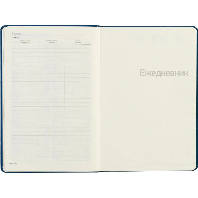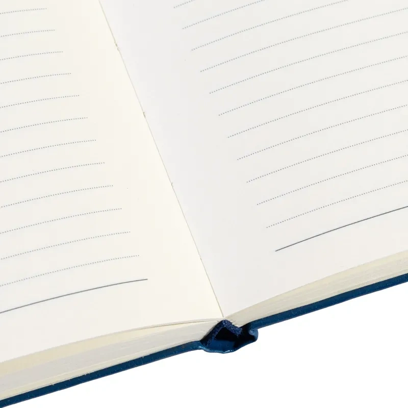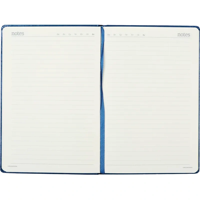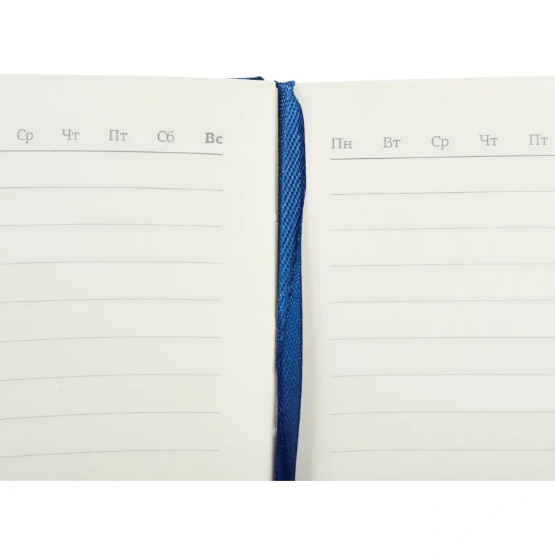 Внутренний блок состоит из 160 листов бежевой офсетной бумаги плотностью 90 г/кв.м. и размером 140×210 мм. Печать выполнена в один цвет, а страницы имеют линейку, что делает записи аккуратными и организованными. Для удобства использования предусмотрена закладка-ленточка (ляссе), которая позволяет быстро найти нужную страницу.