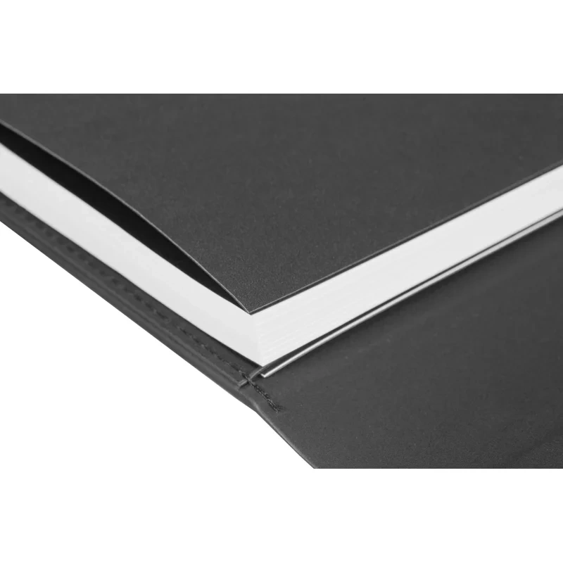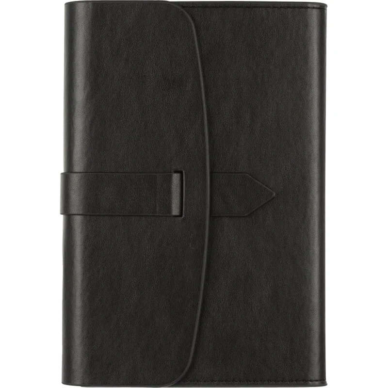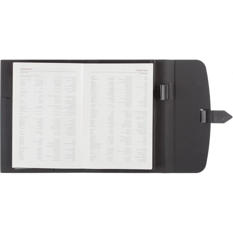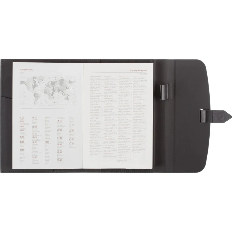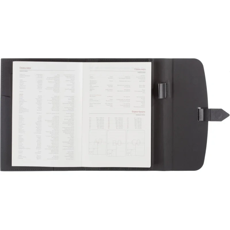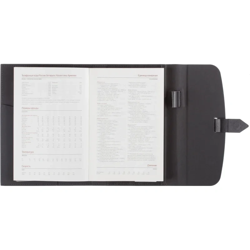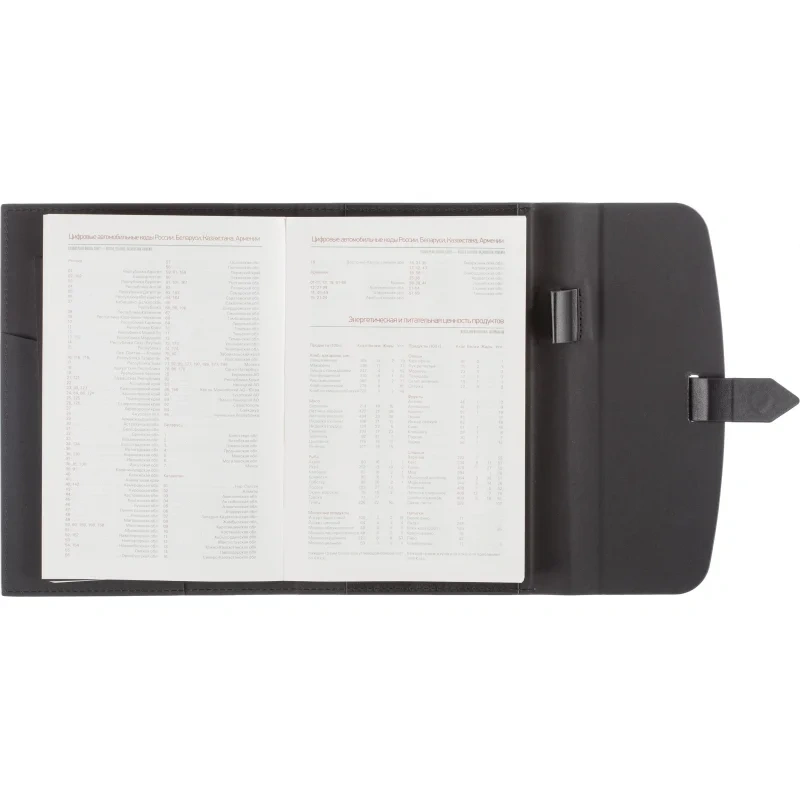 Ежедневник формата A5 с твёрдой обложкой чёрного цвета, выполненной из искусственной кожи, станет идеальным выбором для деловых людей. Внутренний блок состоит из 136 листов (272 страницы) тонированной офсетной бумаги плотностью 90 г/кв.м. с линейкой. Печать выполнена в два цвета.