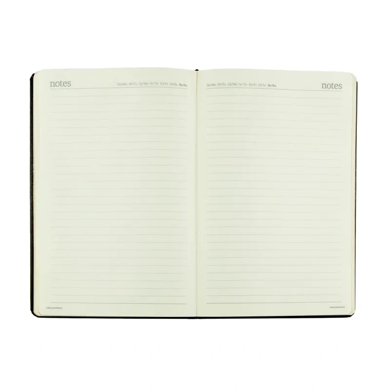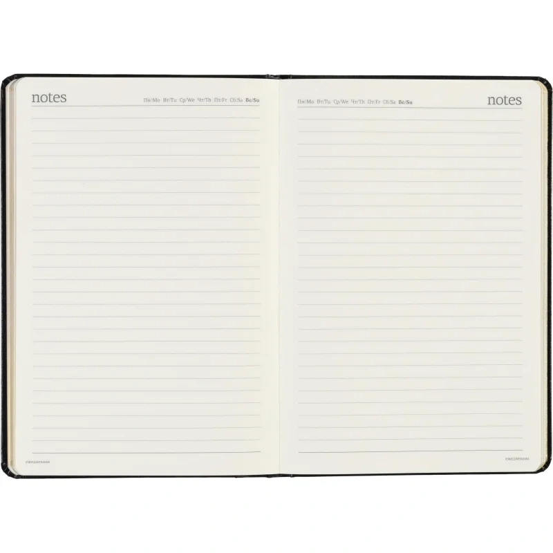 Этот стильный и долговечный ежедневник подходит для персонализации с помощью тиснения фольгой или УФ-печати. Прочная обложка и сшивка страниц обеспечивают долговечность и удобство при использовании.