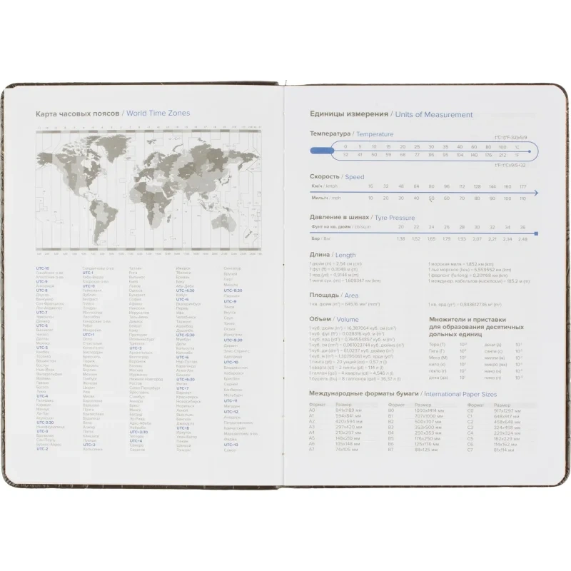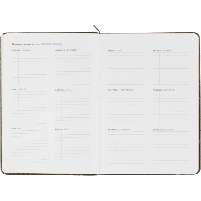 Содержится внутренний календарь на 2024-2027 годы, а также дополнительная справочная информация, необходимая в работе. Подарочная упаковка, карманы и петля под ручку отсутствуют.